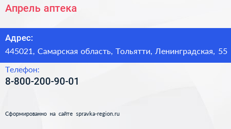 Апрель, аптека по адресу 445021, Самарская область, Тольятти, Ленинградская, 55 в дальнейшем Организация, размещена в следующих категориях: