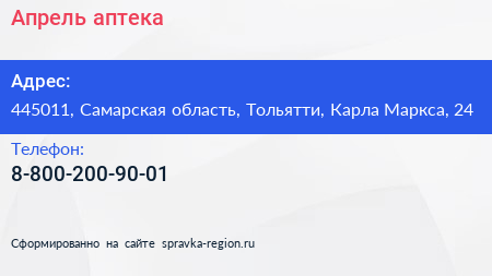 Апрель, аптека по адресу 445011, Самарская область, Тольятти, Карла Маркса, 24 в дальнейшем Организация, размещена в следующих категориях: