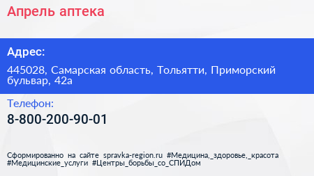 Апрель, аптека по адресу 445028, Самарская область, Тольятти, Приморский бульвар, 42а в дальнейшем Организация, размещена в следующих категориях: