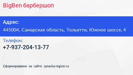 BigBen, барбершоп по адресу 445004, Самарская область, Тольятти, Южное шоссе, 4 в дальнейшем Организация, размещена в следующих категориях: