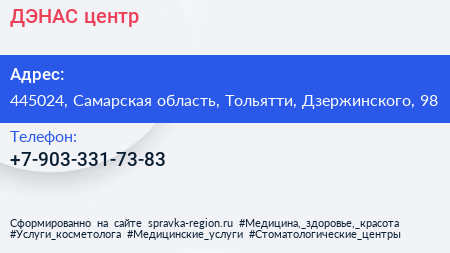 ДЭНАС-центр по адресу 445024, Самарская область, Тольятти, Дзержинского, 98 в дальнейшем Организация, размещена в следующих категориях: