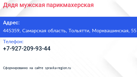 Дядя, мужская парикмахерская по адресу 445359, Самарская область, Тольятти, Морквашинская, 55 в дальнейшем Организация, размещена в следующих категориях: