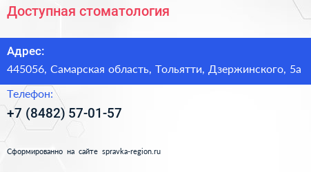 Доступная стоматология по адресу 445056, Самарская область, Тольятти, Дзержинского, 5а в дальнейшем Организация, размещена в следующих категориях: