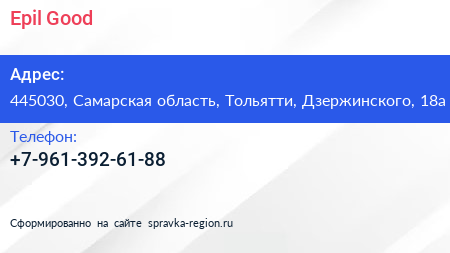Epil Good по адресу 445030, Самарская область, Тольятти, Дзержинского, 18а в дальнейшем Организация, размещена в следующих категориях: