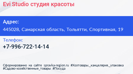 Evi Studio, студия красоты по адресу 445028, Самарская область, Тольятти, Спортивная, 19 в дальнейшем Организация, размещена в следующих категориях:
