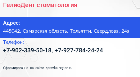 ГелиоДент, стоматология по адресу 445042, Самарская область, Тольятти, Свердлова, 24а в дальнейшем Организация, размещена в следующих категориях: