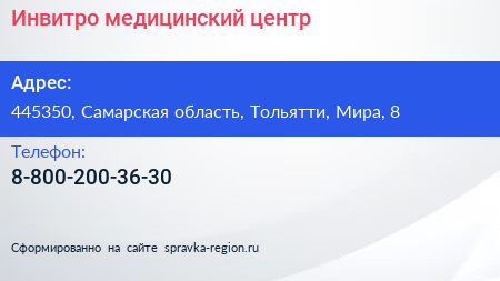 Инвитро, медицинский центр по адресу 445350, Самарская область, Тольятти, Мира, 8 в дальнейшем Организация, размещена в следующих категориях: