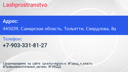 Lashprostranstvo по адресу 445039, Самарская область, Тольятти, Свердлова, 8а в дальнейшем Организация, размещена в следующих категориях: