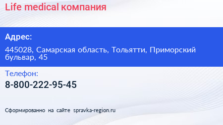 Life medical, компания по адресу 445028, Самарская область, Тольятти, Приморский бульвар, 45 в дальнейшем Организация, размещена в следующих категориях: