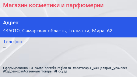 Магазин косметики и парфюмерии по адресу 445010, Самарская область, Тольятти, Мира, 62 в дальнейшем Организация, размещена в следующих категориях: