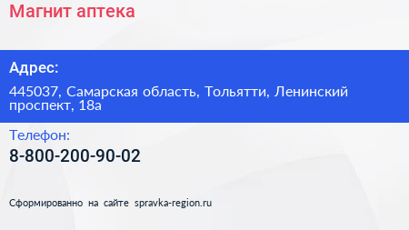 Магнит, аптека по адресу 445037, Самарская область, Тольятти, Ленинский проспект, 18а в дальнейшем Организация, размещена в следующих категориях: