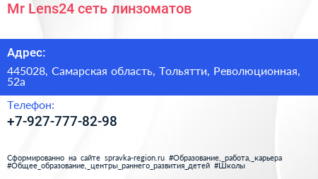 Mr.Lens24, сеть линзоматов по адресу 445028, Самарская область, Тольятти, Революционная, 52а в дальнейшем Организация, размещена в следующих категориях: