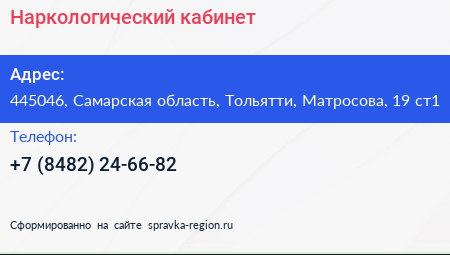 Наркологический кабинет по адресу 445046, Самарская область, Тольятти, Матросова, 19 ст1 в дальнейшем Организация, размещена в следующих категориях: