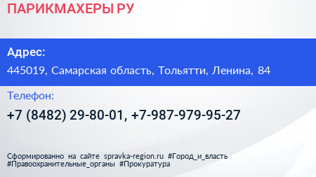 ПАРИКМАХЕРЫ.РУ по адресу 445019, Самарская область, Тольятти, Ленина, 84 в дальнейшем Организация, размещена в следующих категориях:
