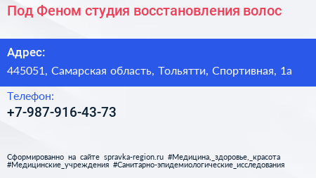 Под Феном, студия восстановления волос по адресу 445051, Самарская область, Тольятти, Спортивная, 1а в дальнейшем Организация, размещена в следующих категориях: