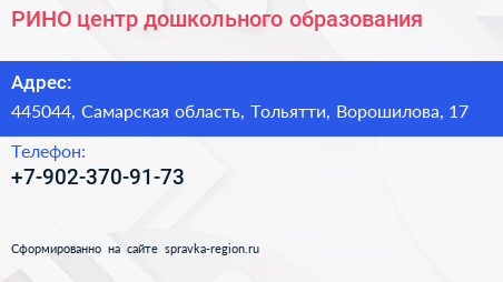 РИНО, центр дошкольного образования по адресу 445044, Самарская область, Тольятти, Ворошилова, 17 в дальнейшем Организация, размещена в следующих категориях: