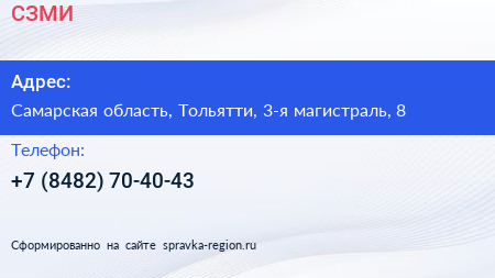 СЗМИ по адресу Самарская область, Тольятти, 3-я магистраль, 8 в дальнейшем Организация, размещена в следующих категориях: