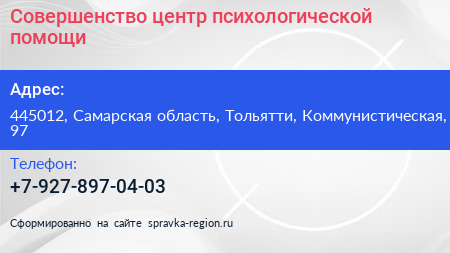Совершенство, центр психологической помощи по адресу 445012, Самарская область, Тольятти, Коммунистическая, 97 в дальнейшем Организация, размещена в следующих категориях: