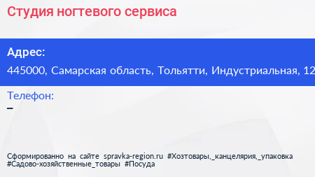 Студия ногтевого сервиса по адресу 445000, Самарская область, Тольятти, Индустриальная, 12 в дальнейшем Организация, размещена в следующих категориях: