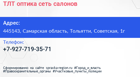 ТЛТ-оптика, сеть салонов по адресу 445143, Самарская область, Тольятти, Советская, 1г в дальнейшем Организация, размещена в следующих категориях: