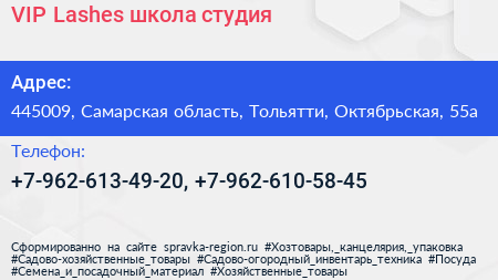 VIP Lashes, школа-студия по адресу 445009, Самарская область, Тольятти, Октябрьская, 55а в дальнейшем Организация, размещена в следующих категориях: