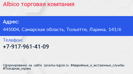 Albico, торговая компания по адресу 445004, Самарская область, Тольятти, Ларина, 141/6 в дальнейшем Организация, размещена в следующих категориях: