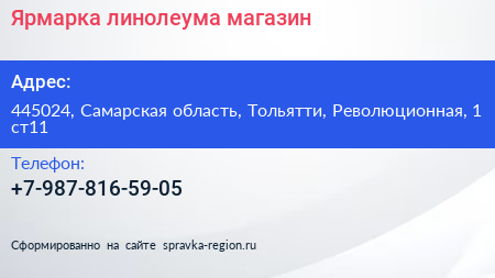 Ярмарка линолеума, магазин по адресу 445024, Самарская область, Тольятти, Революционная, 1 ст11 в дальнейшем Организация, размещена в следующих категориях: