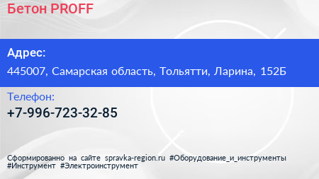 Бетон PROFF по адресу 445007, Самарская область, Тольятти, Ларина, 152Б в дальнейшем Организация, размещена в следующих категориях: