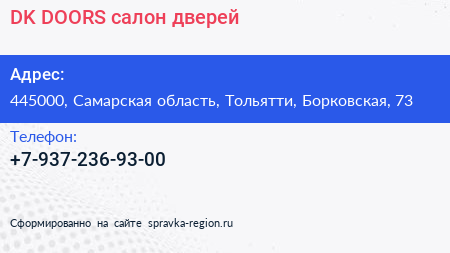 DK-DOORS, салон дверей по адресу 445000, Самарская область, Тольятти, Борковская, 73 в дальнейшем Организация, размещена в следующих категориях: