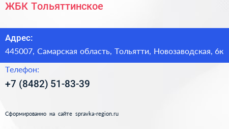 ЖБК Тольяттинское по адресу 445007, Самарская область, Тольятти, Новозаводская, 6к в дальнейшем Организация, размещена в следующих категориях: