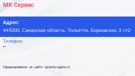 МК-Сервис по адресу 445000, Самарская область, Тольятти, Борковская, 3 ст2 в дальнейшем Организация, размещена в следующих категориях: