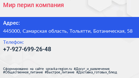 Мир перил, компания по адресу 445000, Самарская область, Тольятти, Ботаническая, 58 в дальнейшем Организация, размещена в следующих категориях: