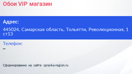 Обои VIP, магазин по адресу 445024, Самарская область, Тольятти, Революционная, 1 ст13 в дальнейшем Организация, размещена в следующих категориях: