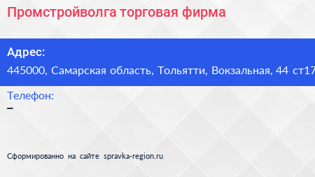 Промстройволга, торговая фирма по адресу 445000, Самарская область, Тольятти, Вокзальная, 44 ст17 в дальнейшем Организация, размещена в следующих категориях: