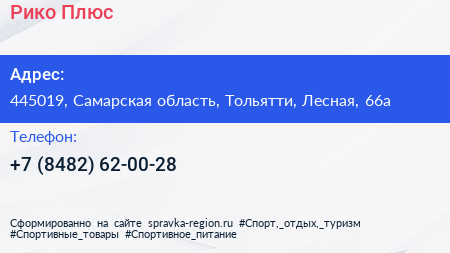 Рико Плюс по адресу 445019, Самарская область, Тольятти, Лесная, 66а в дальнейшем Организация, размещена в следующих категориях: