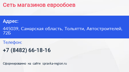 Сеть магазинов еврообоев по адресу 445039, Самарская область, Тольятти, Автостроителей, 72Б в дальнейшем Организация, размещена в следующих категориях: