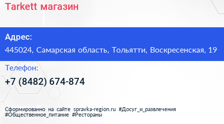 Tarkett, магазин по адресу 445024, Самарская область, Тольятти, Воскресенская, 19 в дальнейшем Организация, размещена в следующих категориях: