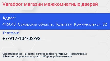 Varadoor, магазин межкомнатных дверей по адресу 445043, Самарская область, Тольятти, Коммунальная, 32 в дальнейшем Организация, размещена в следующих категориях: