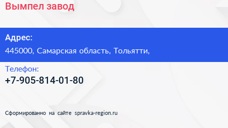 Вымпел, завод по адресу 445000, Самарская область, Тольятти, в дальнейшем Организация, размещена в следующих категориях: