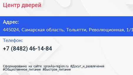 Центр дверей по адресу 445024, Самарская область, Тольятти, Революционная, 1/1 в дальнейшем Организация, размещена в следующих категориях: