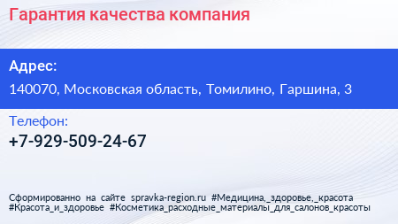 Гарантия качества, компания по адресу 140070, Московская область, Томилино, Гаршина, 3 в дальнейшем Организация, размещена в следующих категориях: