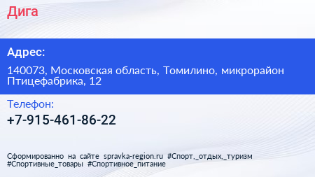 Дига по адресу 140073, Московская область, Томилино, микрорайон Птицефабрика, 12 в дальнейшем Организация, размещена в следующих категориях: