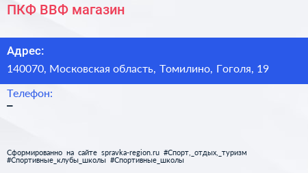 ПКФ ВВФ, магазин по адресу 140070, Московская область, Томилино, Гоголя, 19 в дальнейшем Организация, размещена в следующих категориях: