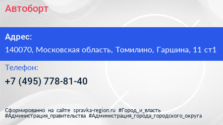 Автоборт по адресу 140070, Московская область, Томилино, Гаршина, 11 ст1 в дальнейшем Организация, размещена в следующих категориях: