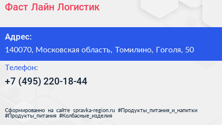 Фаст Лайн Логистик по адресу 140070, Московская область, Томилино, Гоголя, 50 в дальнейшем Организация, размещена в следующих категориях: