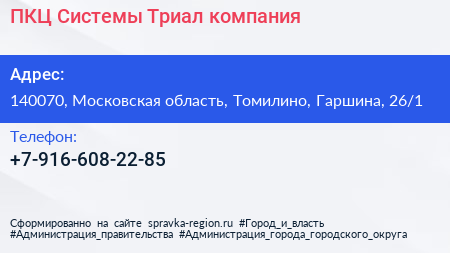 ПКЦ Системы Триал, компания по адресу 140070, Московская область, Томилино, Гаршина, 26/1 в дальнейшем Организация, размещена в следующих категориях: