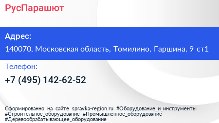 РусПарашют по адресу 140070, Московская область, Томилино, Гаршина, 9 ст1 в дальнейшем Организация, размещена в следующих категориях:
