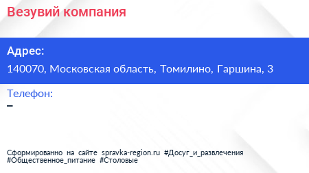 Везувий, компания по адресу 140070, Московская область, Томилино, Гаршина, 3 в дальнейшем Организация, размещена в следующих категориях: