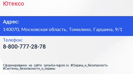 Ютексо по адресу 140070, Московская область, Томилино, Гаршина, 9/1 в дальнейшем Организация, размещена в следующих категориях: