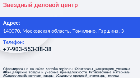 Звездный, деловой центр по адресу 140070, Московская область, Томилино, Гаршина, 3 в дальнейшем Организация, размещена в следующих категориях: